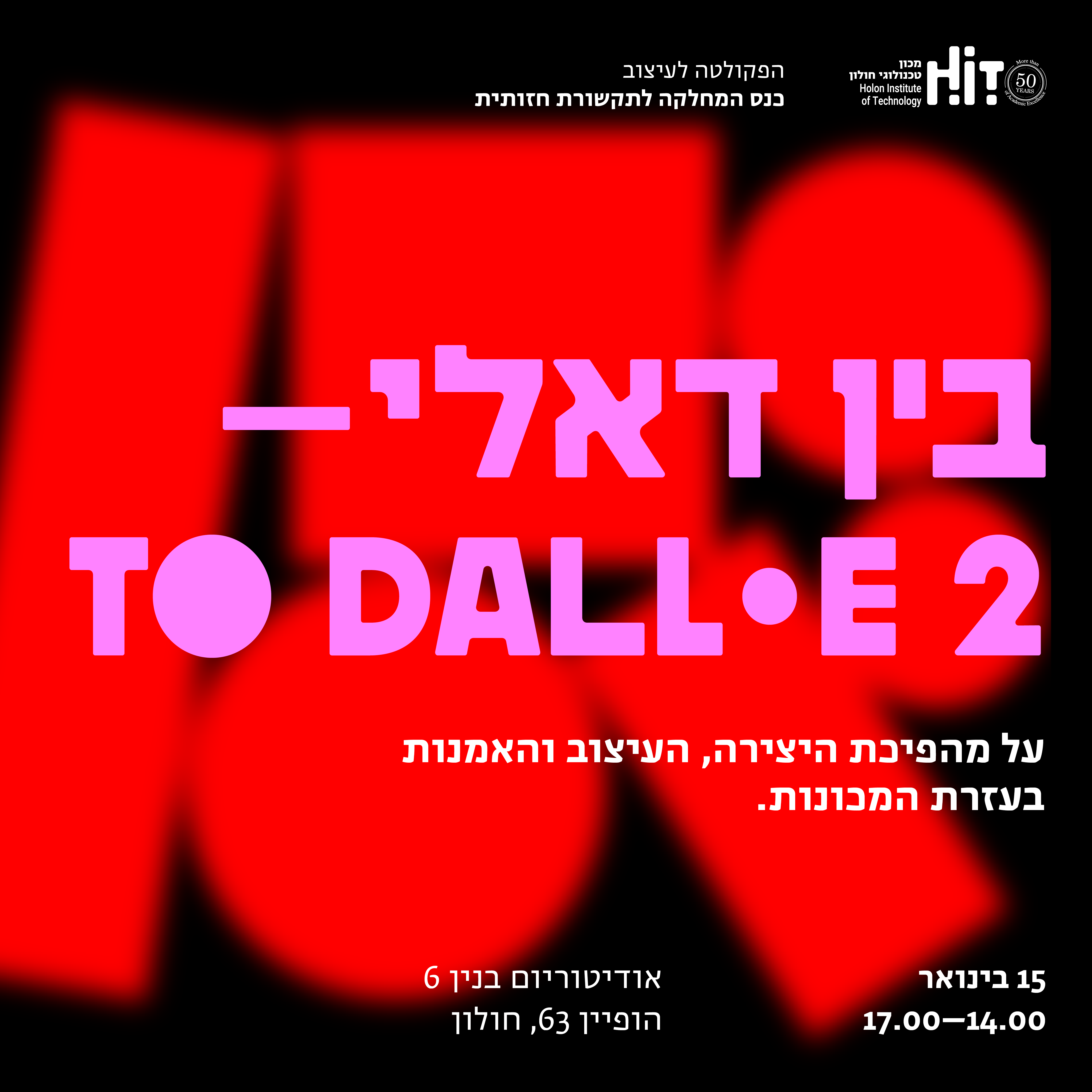 Graphic packaging for a range of events at the HIT Holon Institute of Technology, Faculty of Design — conferences, exhibitions, talks, and public gatherings. A selection from an ongoing collaboration.